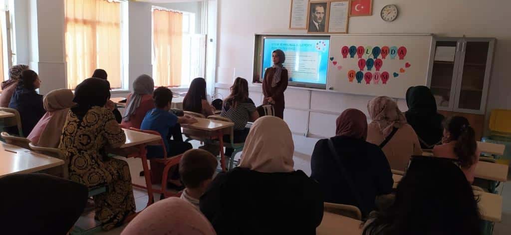Okula yeni başlayan okul öncesi ve birinci sınıf öğrencilerimizin ebeveynlerine yönelik, öğretmenlerimiz ve Okul Rehber Öğretmen/Psikolojik Danışmanlarımız Rabia CAN, Sare YENEN DOĞAN tarafından "Okula Uyum" veli seminerleri düzenlendi. Velilerimize, öğrencilerin okula uyum sürecinde dikkat etmeleri gereken konular hakkında bilgiler verildi.